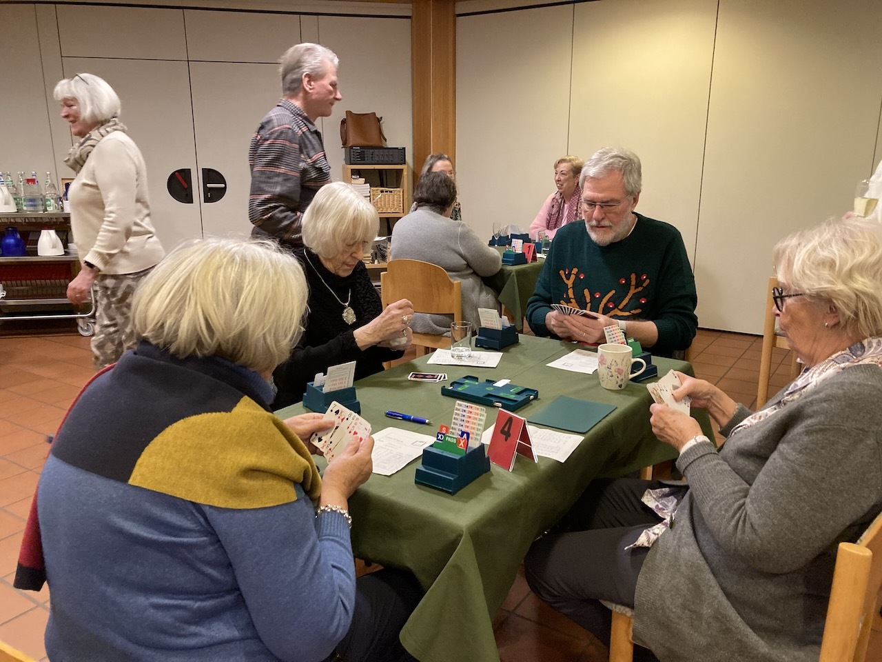 Wir treffen uns alle zwei Wochen montags um 10.30 Uhr zum Üben und jeden Donnerstag um 15.00 Uhr zu Bridgeturnieren nach offiziellen Regeln bei Kaffee, Tee und Kuchen.